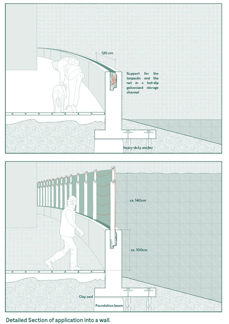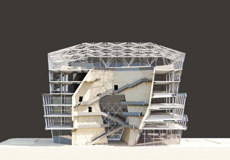 This project’s facade explores the duality of tectonic solidity and material erosion through stereotomic coral limestone and adobe earth walls layered with steel substructures and thermal buffers.