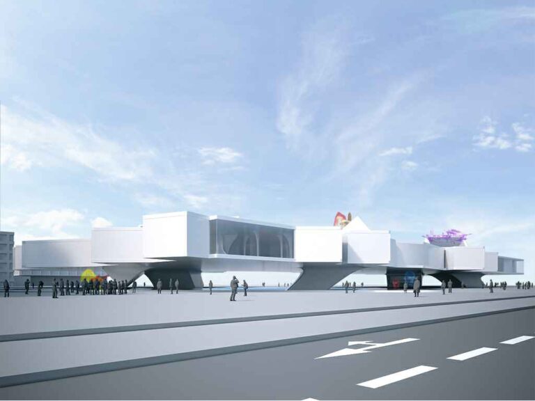 The “IKEA HQ” translates the brand’s flat-pack ethos into architecture, with modular, transportable spaces that assemble and disassemble with ease, expressing flexibility, adaptability, and exposed structural layering.